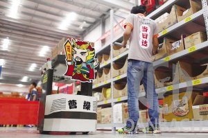 “我們這個倉儲搬運智能機(jī)器人被取名為‘曹操’,俗話說‘說曹操,曹操到’,以此表達(dá)天貓超市對物流實效的要求。”菜鳥網(wǎng)絡(luò)相關(guān)負(fù)責(zé)人表示,“曹操”是部可承重50公斤,速度達(dá)2米/秒的智能機(jī)器人,接到訂單后,它可以迅速定位出商品在倉庫分布位置,并規(guī)劃優(yōu)揀貨路徑。